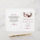 Rústico Burgundy Red Blush Floral Antlers monograma design com buquês florais de cor d'água, setas com corações e buquê floral como divisor; no verso um fundo branco com buquês elegantes de canto floral de cor d'água. Use a ferramenta Personalizar para adicionar suas informações. Você pode mudar fontes, cores. Por favor, visite a minha Coleção de Antigos Florais Burgundy Blush Marsala.