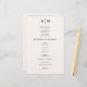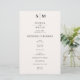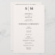 Faça seu dia de casamento inesquecível com este cartão elegante do programa de casamento. No topo, mostre o monograma do casal, acrescentando um toque pessoal e refinado. Abaixo, o itinerário da cerimônia é apresentado em uma fonte serif lindamente trabalhada, guiando seus hóspedes através de cada momento especial. No verso, honre seus membros festas de casamento e inclua um obrigado sincero para mostrar seu apreço. Ideal para casamentos elegantes, este cartão de programa adiciona uma sensação luxuosa à sua celebração.