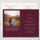 Programa de casamento dobrado estilo clássico com um design simples, mas elegante, em uma cor burgundy profunda que é perfeito para um casamento de outono ou um casamento de inverno / Natal. Use o modelo para adicionar uma foto ou removê-la na ferramenta de edição de design.