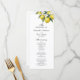 Conduza seus convidados através da sua cerimônia com estilo com este elegante programa de casamento de limão em aquarela. Com arte de citrino pintada à mão e tipografia refinada, este design traz um charme mediterrâneo fresco para o seu dia especial.