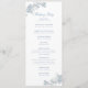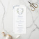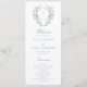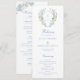 Programa de casamento elegante, adornado com um deslumbrante monograma floral em azul suave e caligrafia clássica.