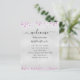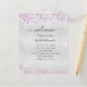 Um programa de casamento moderno e elegante, linha do tempo. Fundo com aparência prateada falsa decorado com corações pequenos rosa fúcsia. Personalize e adicione seus nomes e detalhes do casamento. Letras pretas.