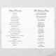 Este programa é uma página de folheto de 8,5 x 11 que requer que você a dobre para montar. Programa de casamento clássico e discreto em preto e branco com um toque moderno, apresentando a escrita elegante da palavra "Casamento" na "capa" externa com borda preta. Todo o texto é editável, você pode mover ou remover qualquer coisa que não precise.