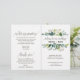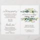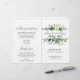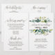 Este programa de casamento com folhagem é perfeito para um casamento rústico. O design apresenta uma moldura boho de folhas verdes e botânicos de folhagem verde. Inclua o nome da noiva e do noivo, a data e local do casamento, uma citação curta, mensagem de agradecimento, ordem de serviço, cortejo e um memorial "em memória amorosa".
