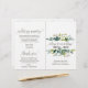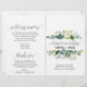 Este programa de casamento com folhagem é perfeito para um casamento rústico. O design apresenta uma moldura boho de folhas verdes e botânicos de folhagem verde. Inclua o nome da noiva e do noivo, a data e local do casamento, mensagem de agradecimento, ordem de serviço, cortejo e um memorial "em memória amorosa".