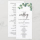 O Programa de Casamento com Folhagens de Eucalipto Rústico é uma peça encantadora e inspirada na natureza que combina elegância rústica com beleza botânica. Com ilustrações de folhagens suaves e eucalipto, este programa oferece um design refrescante e sereno perfeito para casamentos em jardins, ao ar livre ou no campo. Permite que os casais apresentem os detalhes da cerimônia de forma elegante e pessoal, mantendo um tema coerente em toda a papelaria do casamento. Perfeito para aqueles que apreciam elementos naturais e charme rústico, este programa de casamento adiciona um toque final gracioso à experiência da cerimônia.