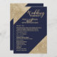 Cantos de lantejoulas de brilho falso dourado impressos elegantes, chiques e glamorosos e escrita dourada em um fundo azul marinho, Programas de Casamento. Este design clássico e sofisticado é perfeito para o casal que se casa moderno e elegante. Personalize com sua própria mensagem na frente, bem como um monograma inicial personalizado no verso. Todo o design de impressão de foto.