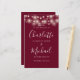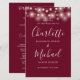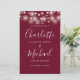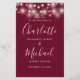 Programa de casamento com assinatura em borgonha apresentando lindas luzes de corda e tipografia moderna e elegante. Este programa de casamento elegante pode ser personalizado com as informações do seu dia especial de casamento. Criado por Thisisnotme
