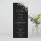 Guie seus convidados através do seu dia especial com o nosso Programa de Casamento de Folhagens Modernas Esmeralda. Com um deslumbrante design de aquarela de folhas de eucalipto e delicadas flores de jasmim, este programa elegante complementa perfeitamente um tema de casamento de folhagens ou aquarela. Com um layout limpo e moderno, oferece uma maneira elegante de compartilhar detalhes da cerimônia, ordem dos eventos e notas especiais, garantindo que seus convidados se sintam incluídos em cada momento.