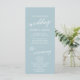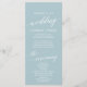Este programa de casamento de coordenadas de praia aqua é perfeito para um casamento de destino tropical. A simples e moderna design apresenta uma surpreendente turquesa, azul-lacre e azul-claro que lembra o mar. É aliado a uma caligrafia elegante. Inclua o nome da noiva e do noivo, a data e o local do casamento, a mensagem do obrigado, a ordem do serviço, a festa noiva e um memorial "em memória amorosa" opcional.