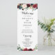 Este programa de casamento de caligrafia russa no outono é perfeito para um casamento moderno. A design apresenta flores brilhantes, vermelhas, marinhos, azuis e esbranquiçadas radiantes e graciosas pintadas à mão, inspiradoras beleza natural.