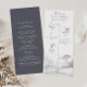 Este programa de casamento da linha do tempo da floresta de inverno é perfeito para um casamento de destino. A design apresenta uma floresta pintada manualmente em colinas e montanhas em uma cena de inverno idílica.