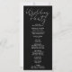 Apresentamos o nosso Programa Celestial de Casamento Negro, uma escolha cativante para casais que buscam um ambiente encantador e místico para o dia do seu casamento. Este elegante programa de casamento apresenta um dramático fundo preto adornado com uma foto mesmerante de uma lua crescente em tons de azul profundo e ouro, cercado por delicado ouro e estrelas brancas contra um pano de fundo de azul-temperado e nuvens de cinza. O imaginário celeste cria uma atmosfera mágica, fazer a escolha perfeita para casais desejando um tema de casamento único, celeste e verdadeiramente místico. No verso do programa, os nomes dos vossos estimados membros da festa de casamento estão cuidadosamente listados, enfatizando os seus papéis significativos no vosso dia especial. O texto do programa é meticulosamente apresentado numa combinação clássica de preto e cinza, utilizando predominantemente uma simples letra de bloco para clareza e legibilidade. Para adicionar um toque de elegância e charme, frases-chave como "Bem-vindo", "Cerimônia" e "Festa de casamento" são delicadamente escritas em uma fonte decorativa bonito, melhorando o encanto geral e a atração do design. Este Programa Celestial de Casamento Negro não serve apenas como um guia prático para seus convidados, mas também como um bem-estar querido, capturando o mistério e a maravilha de uma noite celestial. Com suas imagens celestiais e fontes elegantes de roteiro, este programa define o tom perfeito para um casamento cheio de encanto celestial, amor, e memórias inesquecíveis sob o céu noturno mágico.