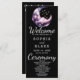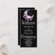 Apresentando nosso Programa Celestial de Casamento de Sonhos, uma peça cativante projetada para infundir sua cerimônia de casamento com uma aura de maravilha celestial e elegância moderna. O programa apresenta um fundo preto elegante, proporcionando o cenário perfeito para uma maravilhosa e contemporânea lua azul e púrpura. Adorada com intrincadas nuvens azuis e roxas, a lua crescente é ainda embelezada por uma aspersão de estrelas amarelas, douradas e rosa, criando um ambiente mesmerizador e mágico. Na parte de trás do programa, você encontrará uma lista de seus estimados membros de festas de casamento, honrando suas contribuições inestimáveis para seu dia especial. O texto dentro do programa é cuidadosamente apresentado numa combinação clássica de preto e cinza, principalmente utilizando uma simples fonte de bloco para clareza e legibilidade. As palavras "Bem-vindo", "Cerimônia" e "Festa de casamento" são elegantemente reproduzidas em uma graciosa letra decorativa, adicionando um toque de sofisticação e charme ao design geral. Nosso Programa Celestial de Casamento de Sonhos é adaptado para casais que buscam um tema de casamento que seja verdadeiramente único, celeste e místico. Com sua paleta colorida cósmica e fontes elegantes de roteiro, este programa não só guia seus convidados, como também serve como uma espécie de keepsasasasaque querida, capturando a atmosfera encantadora de uma noite celestial. Mergulhe seu casamento nas maravilhas cósmicas do universo com o Programa Celestial de Casamento de Sonhos, um testemunho da sua história de amor entre as estrelas.