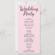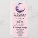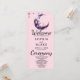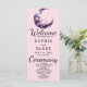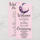 Apresentando nosso Programa Celestial de Casamento por Blush, uma mistura deliciosa de romance e encantamento que irá adicionar um toque de magia celestial ao seu casamento. O programa apresenta um fundo cor-de-rosa macio, que lembra um pôr do sol picturesco, servindo como a canvas perfeita para uma lua azul e púrpura cativante. Adorada com nuvens brancas e roxas, a lua é embelezada por uma dança celestial de estrelas amarelas, douradas e rosa, criando uma atmosfera verdadeiramente mesmerizadora e de outro mundo. Na parte de trás do programa, sua estimada festa de casamento está graciosamente listada, reconhecendo seus importantes papéis em seu dia especial. O texto do programa é cuidadosamente apresentado numa combinação harmoniosa de preto e cinza, utilizando principalmente um simples tipo de letra de bloco para a clareza e a legibilidade. No entanto, as palavras "Bem-vindo", "Cerimônia" e "Festa de casamento" são, elegantemente, escritas em letra decorativa, acrescentando um toque de sofisticação ao design e melhorando o tema celeste geral. Nosso Programa Celestial de Casamento por Blush é a escolha perfeita para casais que buscam um tema de casamento que seja único e místico. Com sua paleta de cores harmoniosa e suas fontes elegantes, este programa não só serve como um guia prático para seus hóspedes, como também se torna um bem-estar apreciado, capturando a beleza etérea de uma noite iluminada. Elevem seu casamento ao reino do encanto celeste com o Programa Celestial Blush Wedding, um testemunho da sua história de amor contra o pano de fundo do cosmos místico.
