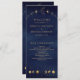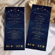 Elegante programa de casamento com uma bela ilustração mostrando fases da lua e tipografia moderna.