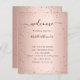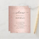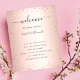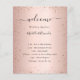 Um programa de casamento moderno e elegante, linha do tempo. Fundo laminado, rosa, de cor dourada, decorado com pó falso brilhante. Personalize e adicione seus nomes e detalhes do casamento. Letras pretas coloridas. Se você tiver mais texto, é possível reduzir o espaço na linha.