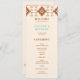 Um moderno cowboy, elegante cartão do programa de casamento ocidental do país com um tema do sudoeste, deserto, apresentando um motif tribal desenhado à mão, estilizado, do sudoeste, num estilo de arte expressivo. Uma escolha encantadora para um casamento ocidental, um casamento no celeiro do país, um casamento no deserto, um casamento de vaqueiro ou um casamento no rancho do país.