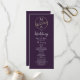 Elegante, chic, moderno, minimalista, simples programa de casamento roxo com monograma único de aves de casal desenhadas à mão e roteiro de caligrafia manuscrito.