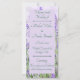 Este programa de casamento ajuda a fazer seu dia especial correr sem problemas, com informações sobre a cerimônia de casamento de um lado e uma lista da festa de casamento do outro. Esta bela design natural de flores suaves lavandas do interior, em flor, adiciona esse toque de elegância e organização ao seu evento.
