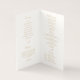 Elegante, fresco e moderno. Esta bela e na moda, carta dobrada de casamento, apresenta rosas desenhados à mão bonito e um conjunto contemporâneo de fontes em um ouro falso macio, contra um fundo de cobrir de marfim leve e dentro branco nítido. Inclui listas de cerimônias e festas de casamento e cronogramas, bem como um pequeno obrigado da mensagem do casal. Variações deste design estão disponíveis na coleção.