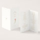 Elegante, fresco e moderno. Esta bela e na moda, carta dobrada, apresenta rosas desenhados à mão bonito e um conjunto contemporâneo de fontes em um ouro falso macio, contra um fundo de marfim leve. Inclui listas de cerimônias e festas de casamento e cronogramas, bem como um pequeno obrigado da mensagem do casal. Variações deste design estão disponíveis na coleção.