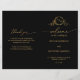 Bem-vindos aos seus convidados com este elegante programa de casamento preto e monograma de ouro com belos monogramas desenhados à mão e detalhes caligráficos modernos e escritos à mão em folha de ouro falsa. Fundo em preto. Capacidade de personalizar todas as áreas para atender às suas necessidades. NOTA: este programa chega ao plano e requer a dobradura do meio para montar. O valor padrão do papel é recomendado. Para uma dobra limpa, sugerimos que seja marcado papel com pasta de osso barata. O tamanho refere-se ao programa "antes" que é dobrado, como se vê na imagem de pré-visualização "frontal". Parte da nossa "Coleção de Casamentos de Monogramas Pretos e Dourados" com uma variedade de produtos coordenadores disponíveis. Visite a coleção inteira em: https://www.zazzle.com/collections/black_and_gold_monogram_wedding_collection-119092477004367833
