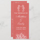 Esta design apresenta um recife de coral e um cavalo do mar casal. O fundo é uma cor bonito de salmão cor de laranja rosa. Personalize este programa com seus detalhes de casamento. Estas são excelentes para o tema da praia, oceano, litoral, casamentos costeiros e de destino. Envie-me uma mensagem se precisar de ajuda para a personalização. As costas podem ficar complicadas especialmente se você tem muitas pessoas na sua festa de casamento.
