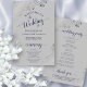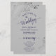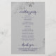 Estes programas de casamento são elegantes e saborosos, enquanto ainda são favoráveis ao orçamento. O design apresenta um local de folha fina de cinza prateada ornamentado com texto de cor azul marinho em um fundo de cinza. A tipografia apresenta uma caligrafia antiga em script, e há espaço para detalhes sobre a cerimônia, a festa noiva e um obrigado curto para você.