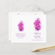 Moderno e estilizado programa de casamento de orquídeas florais pintado a cores-d-d-água, parte design do conjunto de papéis de carta de casamento de orquídeas radiantes. Bonito tons pastéis em cor rosa, roxo e branco radiante. Edite este programa de casamento com seu próprio nome, datas, texto da cerimônia, assistentes de festa de casamento e obrigados. Programa simples, mas elegante, simplesmente substitua o texto de amostra pelos detalhes de suas informações de casamento e dobre programas ao meio no ato de entrega. Design único e pintura original de orquídea de aquarela por Sarah Trett.