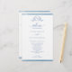 Programa Elegante de Casamento azul, com delicado monograma botânico desenhado à mão, com casais iniciais, e enquadrado por lindas faixas de cor azul. Capacidade de fazer alterações e ajustes de texto selecionando personalizar ainda mais. Frente com detalhes da cerimônia de casamento, volte com nomes de festa de casamento e obrigado que envie para seus convidados. Sentimento elegante, simples e gracioso. Iniciais em tipografia elegante de blocos modernos. O mesmo design com iniciais em caligrafia clássica também está disponível. Parte da nossa coleção "Blue Watercolor Botanical Monographic Wedding" com uma variedade de produtos de coordenação disponíveis, incluindo menu, cartões de mesa, números de tabelas e cartões de agradecimento. Visite toda a coleção com este link: https://www.zazzle.com/collections/blue_watercolor_botanical_monogram_wedding-119923294821263262