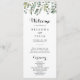 Este programa de casamento de alegria de eucalipto verde é perfeito para um casamento moderno. A design apresenta um eucalipto elegante desenhado à mão por uma aquarela botânica, inspiradora beleza natural.