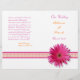 O texto deste programa de casamento de margarida rosa-gerbera é totalmente personalizável. Destina-se a ser dobrada ao meio. Para alterar o texto, use a opção personalizar. Para alterações de texto mais abrangentes, como alterações na fonte, cor da fonte, tamanho da fonte ou layout de texto, use a opção personalizar. Além disso, uma vez que seu texto seja finalizado, se você precisar movê-lo um pouco, você pode fazer isso usando a opção personalizar. Este programa especial de ocasião para a margarida rosa-gerbera é personalizado como um programa de casamento, mas funcionaria bem como um programa para uma celebração de aniversário (doce 16), chá de casamento, ou possivelmente uma celebração de segundo grau também. Na verdade, isso até faria um belo boletim da igreja com mudanças no texto. Deixem a vossa imaginação guiar-vos. É recomendável que isso seja adquirido apenas como um acabamento padrão de 80 lb. A opção de papel de 100lb é difícil de dobrar e, portanto, não é recomendada.