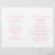 Duas pombas brancas de dois lados com duas fitas cor-de-rosa, programa de casamento. Parte do conjunto de papéis de carta de pomba branca. Bonito tom rosa e branco pastel. Edite este programa de casamento com seu próprio nome, datas, texto da cerimônia, assistentes de festa de casamento e obrigados. Um programa simples, mas elegante, simplesmente substitua o texto de amostra pelos detalhes de suas informações de casamento e dobre programas ao meio na entrega. Design exclusivo de Sarah Trett.
