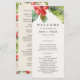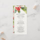 Flores tropicais elegantes e folhagem com tipografia serif clássica para programa de casamento.