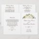 Design de cartão elegante, com flores brancas delicadas e folhas verdes, cor d'água, cruz e quadro dourados falsos, divisor floral, sobre fundo branco. Use a ferramenta Personalizar para adicionar suas informações, alterar fontes, cores da fonte. Para obter itens correspondentes, visite minha coleção de flores brancas delicadas.