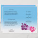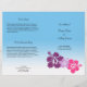 Crie seus próprios programas de casamento de qualidade profissional com este modelo de programa duplo e fácil de usar. Este programa simples, mas elegante apresenta um trio de flores de hibisco havaianas no cobrir. O texto de dentro é colocado sobre um fundo azul calmo, como o oceano quente do Havaí. Simplesmente substitua o texto de exemplo pelas suas informações de casamento. Papel de medida 8-1/2" x 11" Você precisará dobrar programas em 8-1/2" x 5-1/2". Se você precisar personalizar ainda mais o espaçamento e os tamanhos do texto, basta clicar no botão "Personalizar!". Sinta-se à vontade para entrar em contato comigo diretamente se precisar de ajuda para digitar o programa.