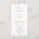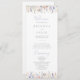 Este programa de casamento de flores silvestres multicolores de verão é perfeito para um casamento rústico. O design apresenta uma coloração aquosa, rosa, púrpura, vermelha, burgundy, amarela, flores brancas e borboletas, com vegetação nebulosamente embebida em buquês florais elegantes.