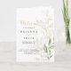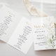 Este programa de casamento dourado de folhagem dobrada é perfeito para um casamento rústico. Este design artístico apresenta a aquarela desenhada à mão, ouro e folhagem verde, inspirando beleza natural. Inclua uma citação ou mensagem curta, ordem de serviço, festa de casamento e obrigado da mensagem.