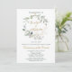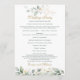 Esta design apresenta uma ilustração de uma bela coroa botânica com folhas esverdeadas e ouros em estilo aquarela.Este Programa de Casamento faz parte de um conjunto correspondente. Você pode ajustar o texto de acordo com as suas necessidades.