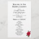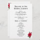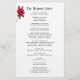 Programa de casamento em papel plano com texto de ambos os lados. Realista, as rosas vermelhas enfeitam papel branco com texto preto. Os nomes do casal são guardados juntamente com um grande sinal "e" em cinzas leves. Use esta modelo para uma maior prestação de serviço/serviço religioso, pois dá ao casal mais espaço para nomes e textos de cerimônia. Este artigo é barato e fácil de personalizar para qualquer cerimônia de casamento.