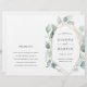 Este programa de cerimônia de núpcias apresenta cores d'água eucalipto e folhas verdes botânicas com uma estrutura geométrica dourada. NOTA: Você precisará dobrá-los ao meio quando eles chegarem.