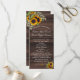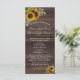 Design de cartão de casamento rústico country com buquês de girassóis aquarela, uma forma semi-transparente com uma moldura texturizada, flechas com corações e girassóis como divisor, tudo sobre um fundo de celeiro antigo. Use a ferramenta Personalizar para adicionar suas informações. Itens correspondentes podem ser encontrados na minha Coleção Celeiro Antigo de Girassóis Rústicos.