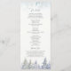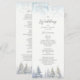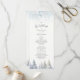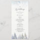 Guie seus convidados através de sua cerimônia com este elegante programa de casamento de inverno. Projetado com pinheiros suaves em aquarela, delicados enfeites de flocos de neve e um layout limpo, este design traz charme rústico e serenidade sazonal para sua celebração. Perfeito para casamentos em montanhas, florestas ou dezembro.