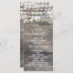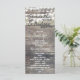 Programa de Casamento de Madeira russa e de cordas. fundo de madeira de cinza de vintage decorado com cordas de luz. Convite de casamento perfeito para o casamento com luzes noturnas tema do casamento, tema do celeiro, tema do jardim, casamento ao ar livre com luzes cintilantes.