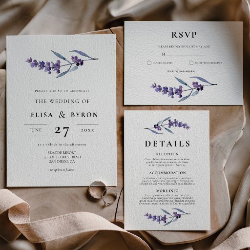 Um clássico e elegante design de aquarela lavanda, perfeito para um casamento floral.