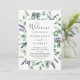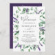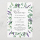 Esta lavanda rústica e fã do programa de casamento de eucaliptos é perfeita para um casamento simples e elegante ao ar livre. O design floral apresenta folhas de cor aquosa de eucalipto e verde com espinhos de flores silvestres roxas. Inclua o nome da noiva e do noivo, a data e a localização do casamento, a mensagem do obrigado, a ordem do serviço e a festa noiva.
