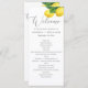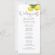 Celebre seu grande dia com este programa de casamento de limão acentuado por citros de aquarela e limpando verde, um design que traz um doce charme de pomar para sua suíte de papelaria. Criado em um layout de dois lados, este cartão combina elegância e função, fazer de que seus convidados se sintam bem-vindos e informados. O lado frontal apresenta a ordem completa do serviço - desde prelúdios e leituras a votos, bênçãos e resessões. O verso apresenta seus entes queridos com uma lista detalhada de festas de casamento. Perfeito para casais planejando um casamento no jardim de verão, celebração rústica de vinhedo, cerimônia à beira-mar, ou evento inspirado na Costa Amalfi. Este programa de pomares cítricos dá um tom quente e alegre.
