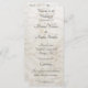 Este programa de casamento ajuda a fazer seu dia especial correr sem problemas, com informações sobre a cerimônia de casamento de um lado e uma lista da festa de casamento do outro. Este simples design de colheita em cremes suaves e um padrão de local bordado adiciona esse toque de elegância e organização ao seu evento.