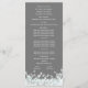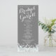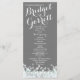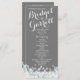 Prata, cinza e brilho da horta programas de casamento com cartão de rack impresso a design com texto branco.